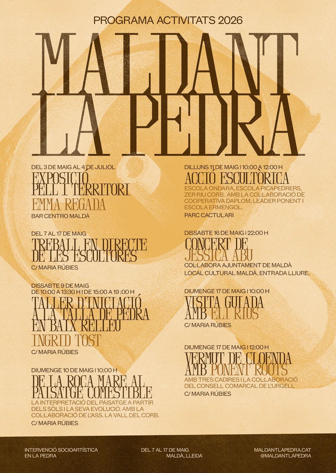 Deurant el mes de maig se celebra a Maldà l'edició 2026 de MALDANT LA PEDRA, Festival d'intervenció socio-artística en la pedra.