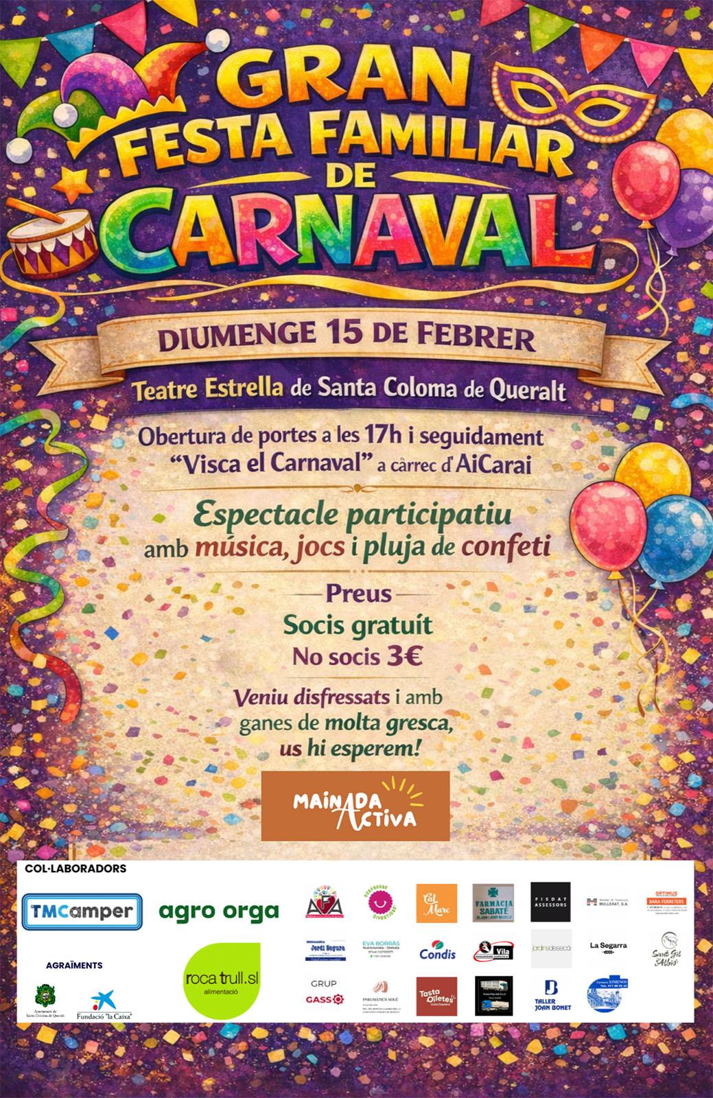 Diumenge 15 de febrer , a les 5 de la tarda, Carnaval Mainadactiva al Teatre l'Estrella.