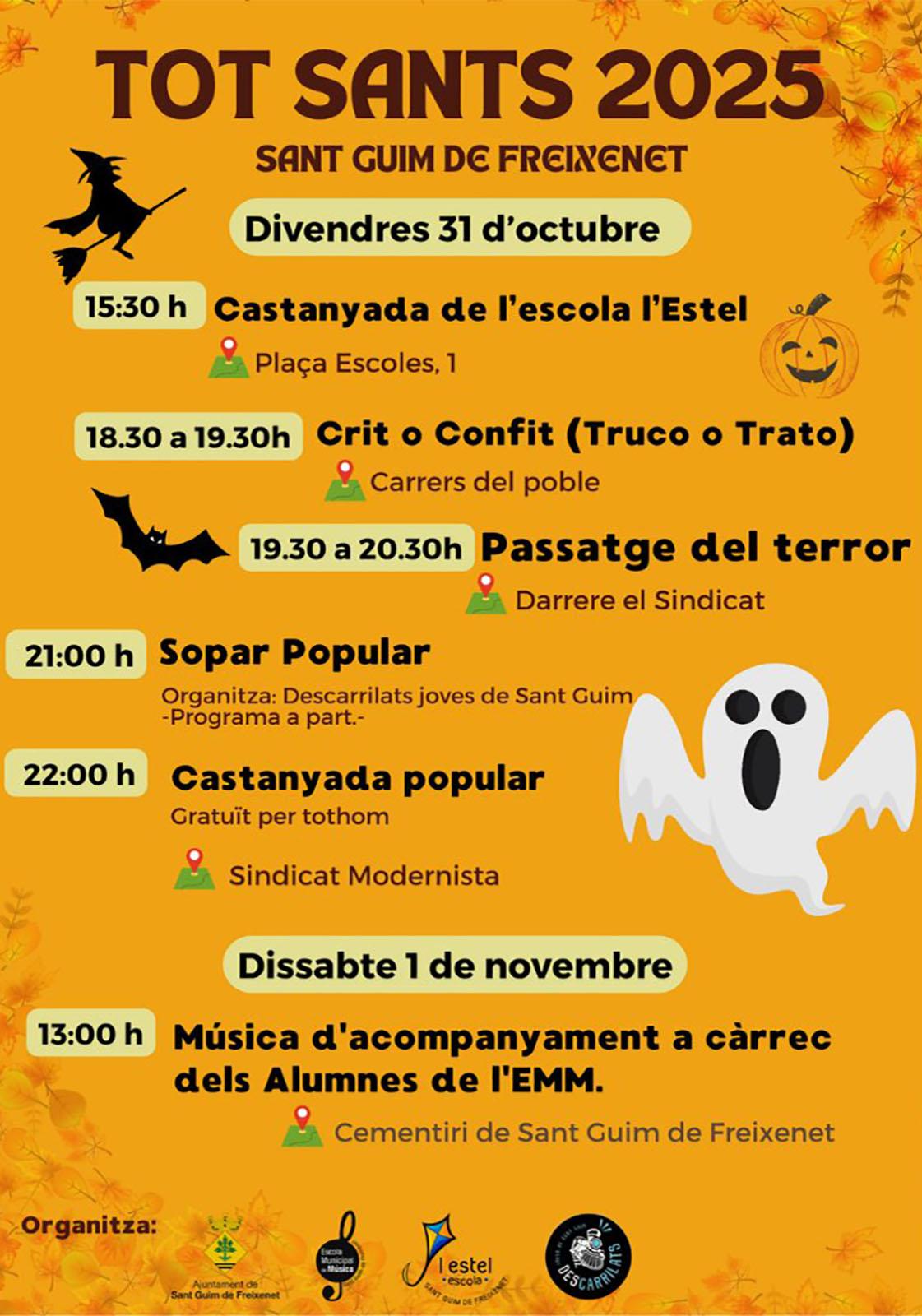 Els dies 31 d’octubre i 1 de novembre Sant Guim de Freixenet celebra la festa de TotSants amb diferents activitats.