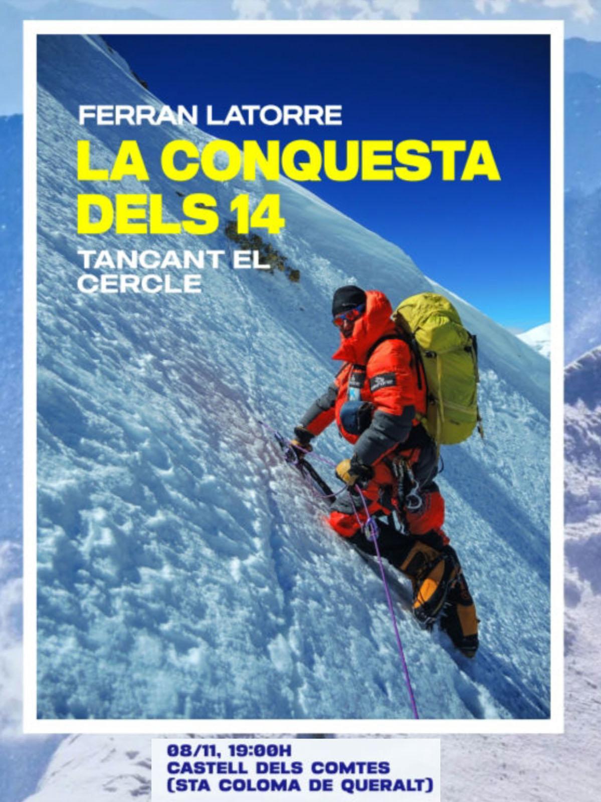 Última entrega del Cicle de Cinema de Muntanya, organitzat pel CEQ, la UECANOIA i la Colla Excursionista de Vilanova del Camí. Conferència del reconegut alpinista català Ferran Latorre acompanyada d'imatges i vídeos (primer català en assolir els catorze 8000's).