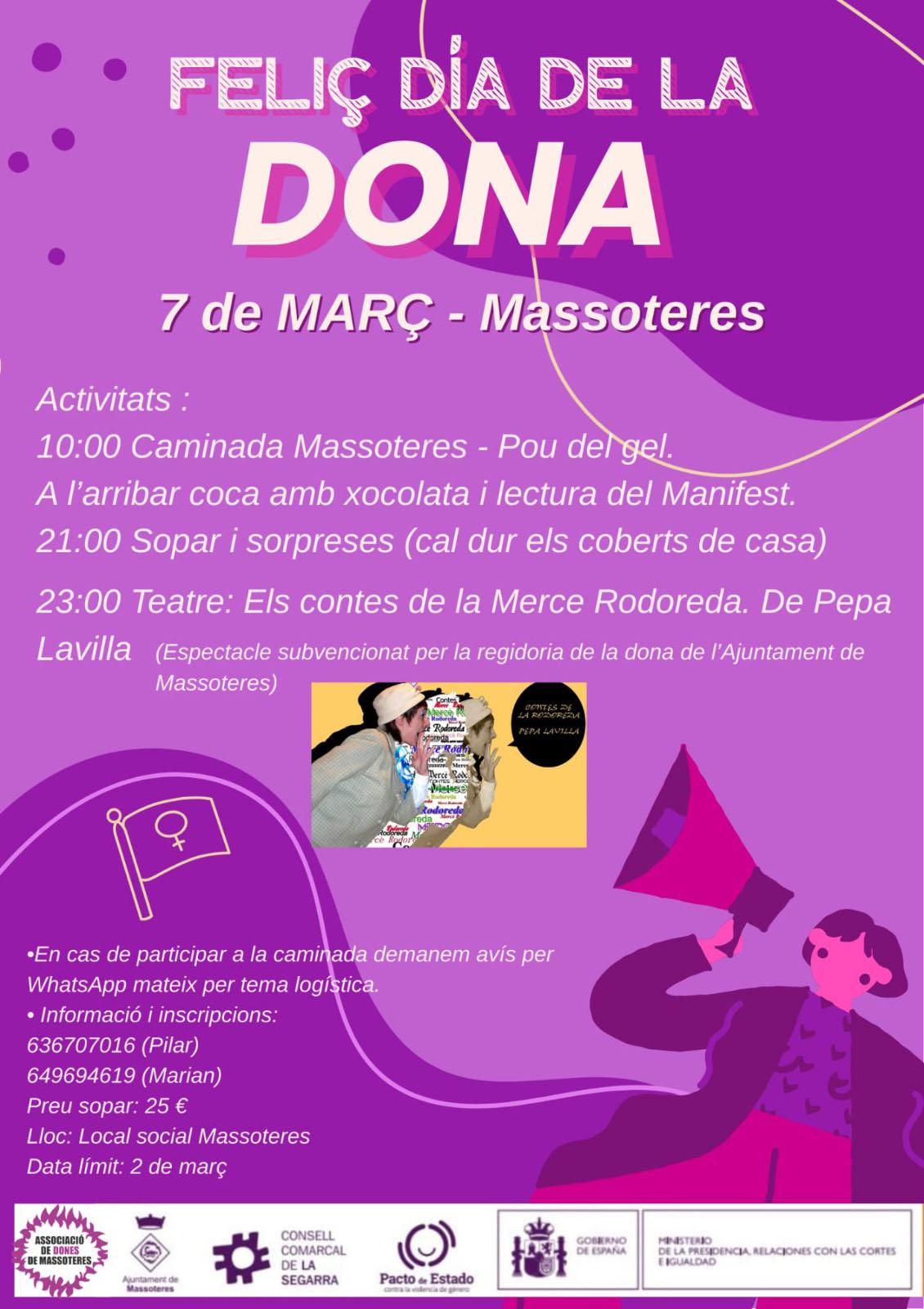 Dissabte, 7 de març l'Associació de Dones de Massoteres ha programat diferents activitats en motiu del Dia Internacional de la Dona.